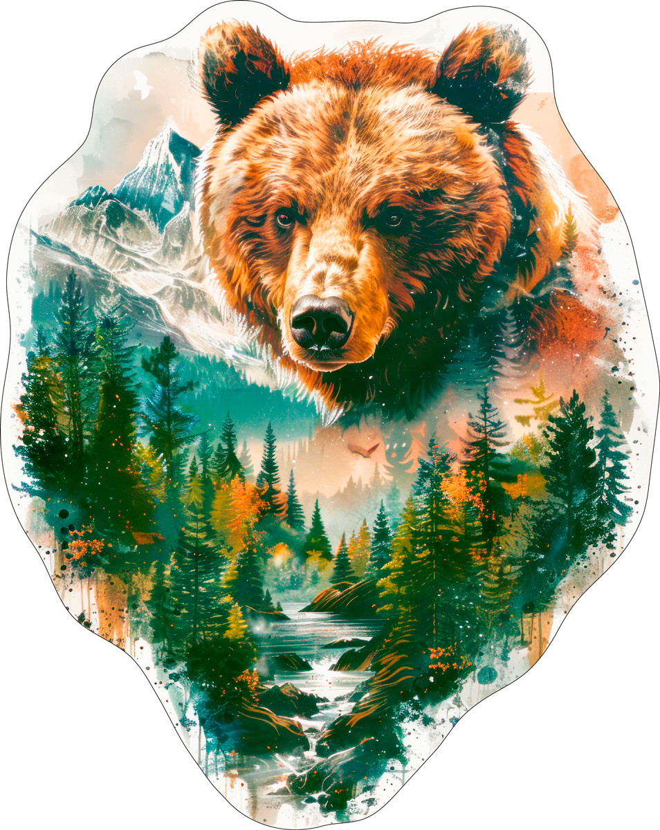 " ФРЕЯ" PZLF- 007 Пазл фигурный деревянный " Медведь в тайге" 156 элемент.